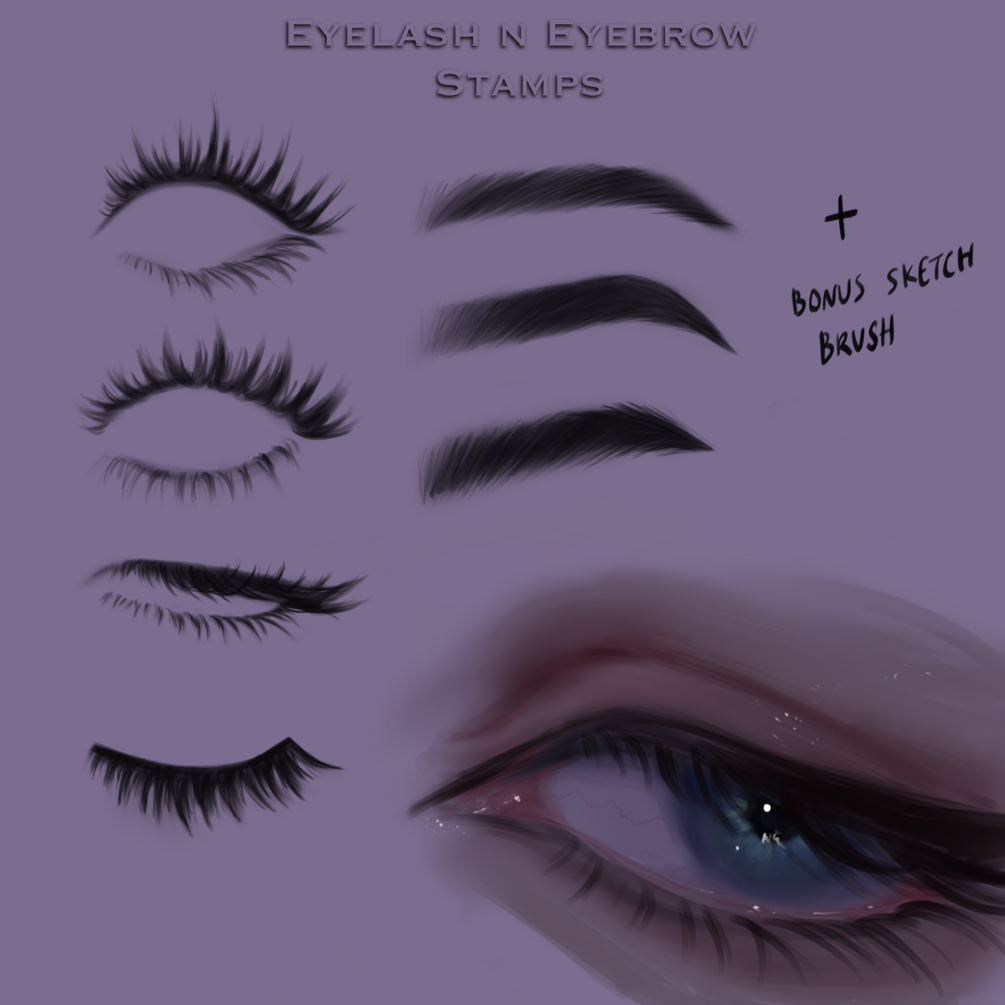 6 eyelash and eyebrow outline stamps for fast and simple art in Procreate! BONUS: my sketch / coloring brush <3